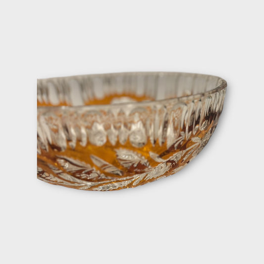 Gorgeous Walther Pressed Glass Tinted Amber Bowl – Floral Motif